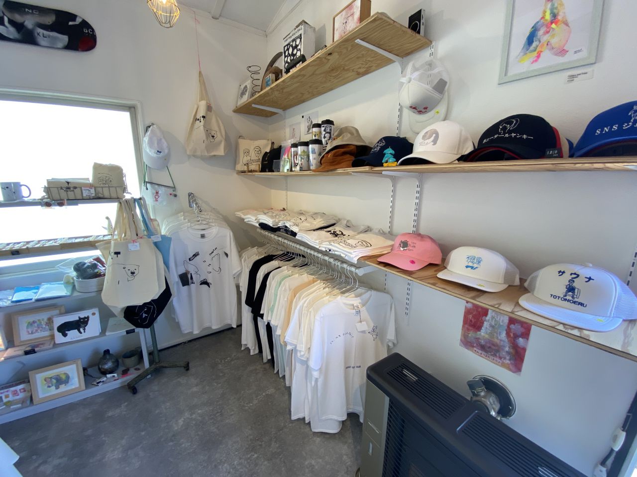 新作Tシャツなど新たに書き起こしたイラストのグッズが並びます。