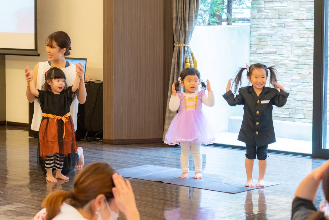 お次は親子ヨガ♪お子さんのストレッチやリトミック体操から始まり、親子みんなでお歌を歌いながら楽しくヨガのポーズ♪徐々に体を温めていきます。
