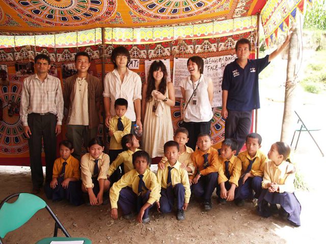 ネパールで写真展を開催。現地の学生さんとの記念写真。