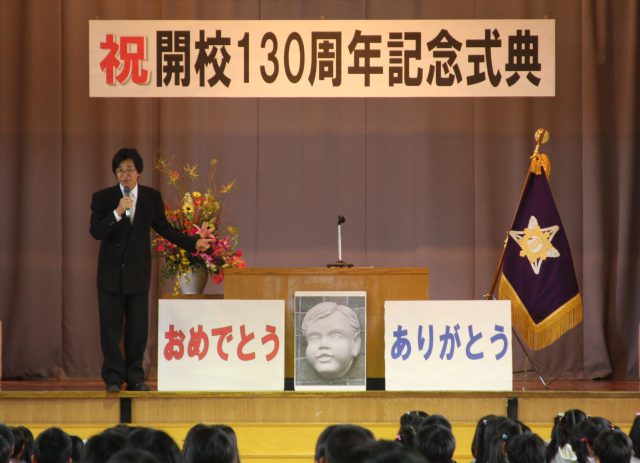 かつて勤務していた学校の開校130周年記念式典の折、学校長式辞で挨拶しているのが私。かなり前の事ですが、今でも鮮明に思い出すことができます。