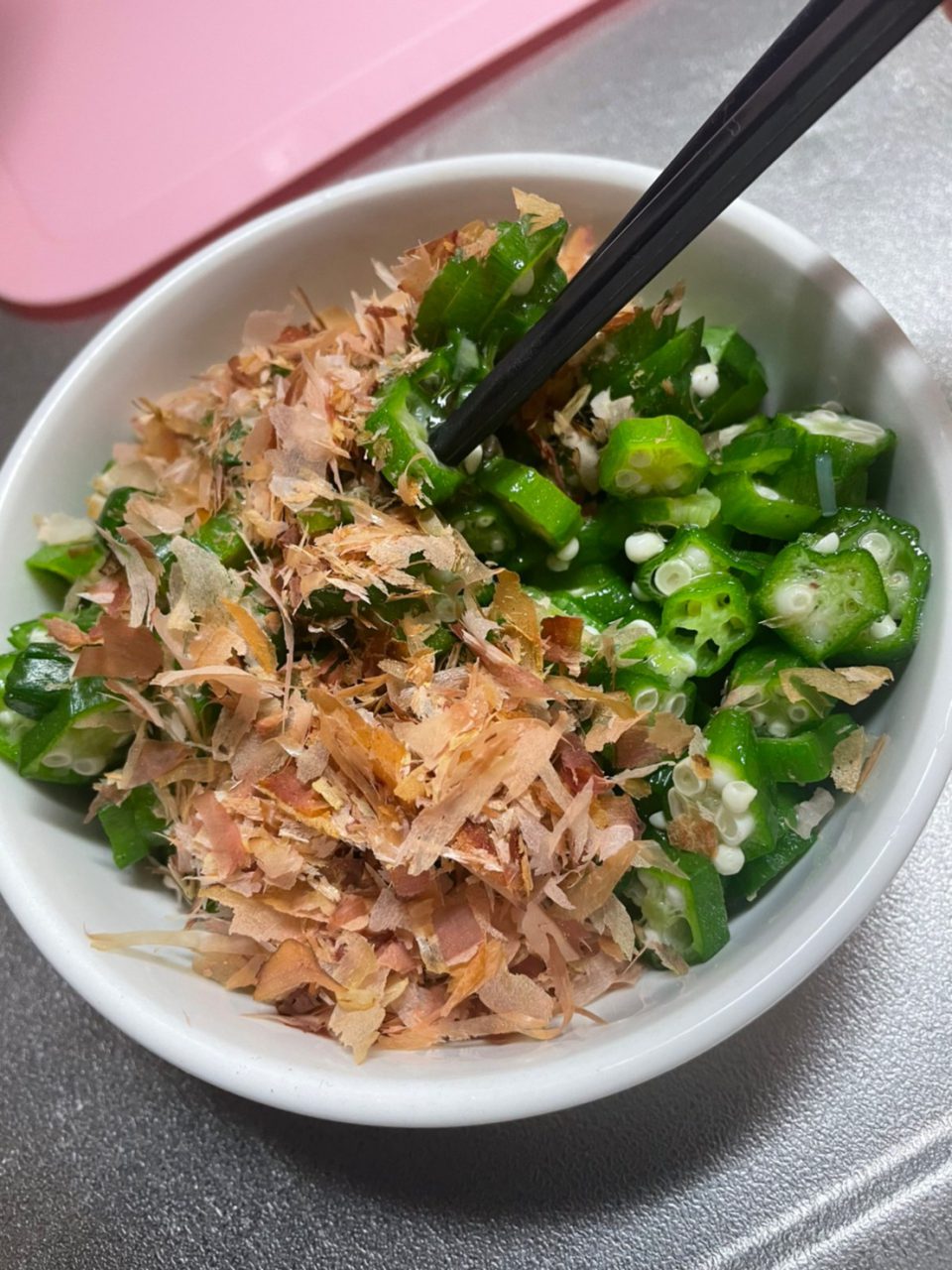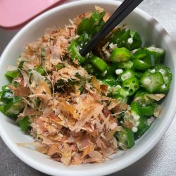 オリジナルレシピ:オクラと鰹節の和え物(味付けは極UMAMI美人大さじ2のみ!簡単!)