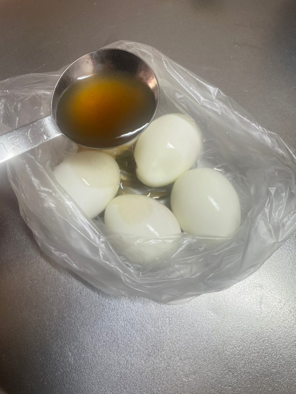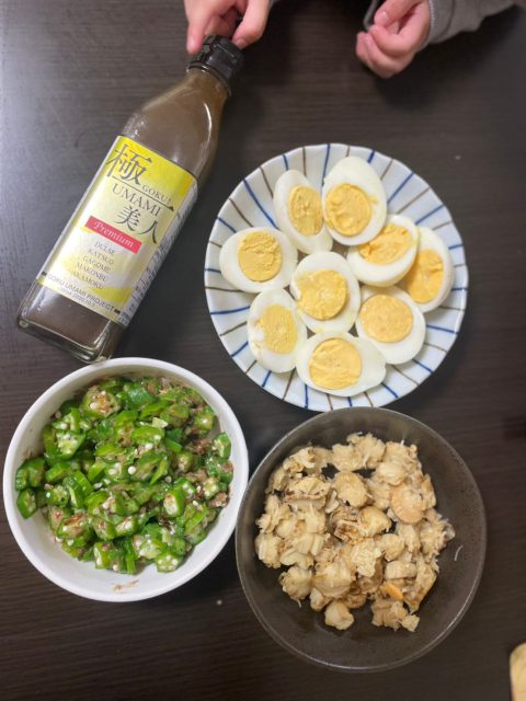 クックパッド参考レシピ:https://cookpad.com/recipe/6566684(味玉)、https://cookpad.com/recipe/6757143(帆立バター酒蒸し)ベビーホタテバージョン