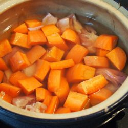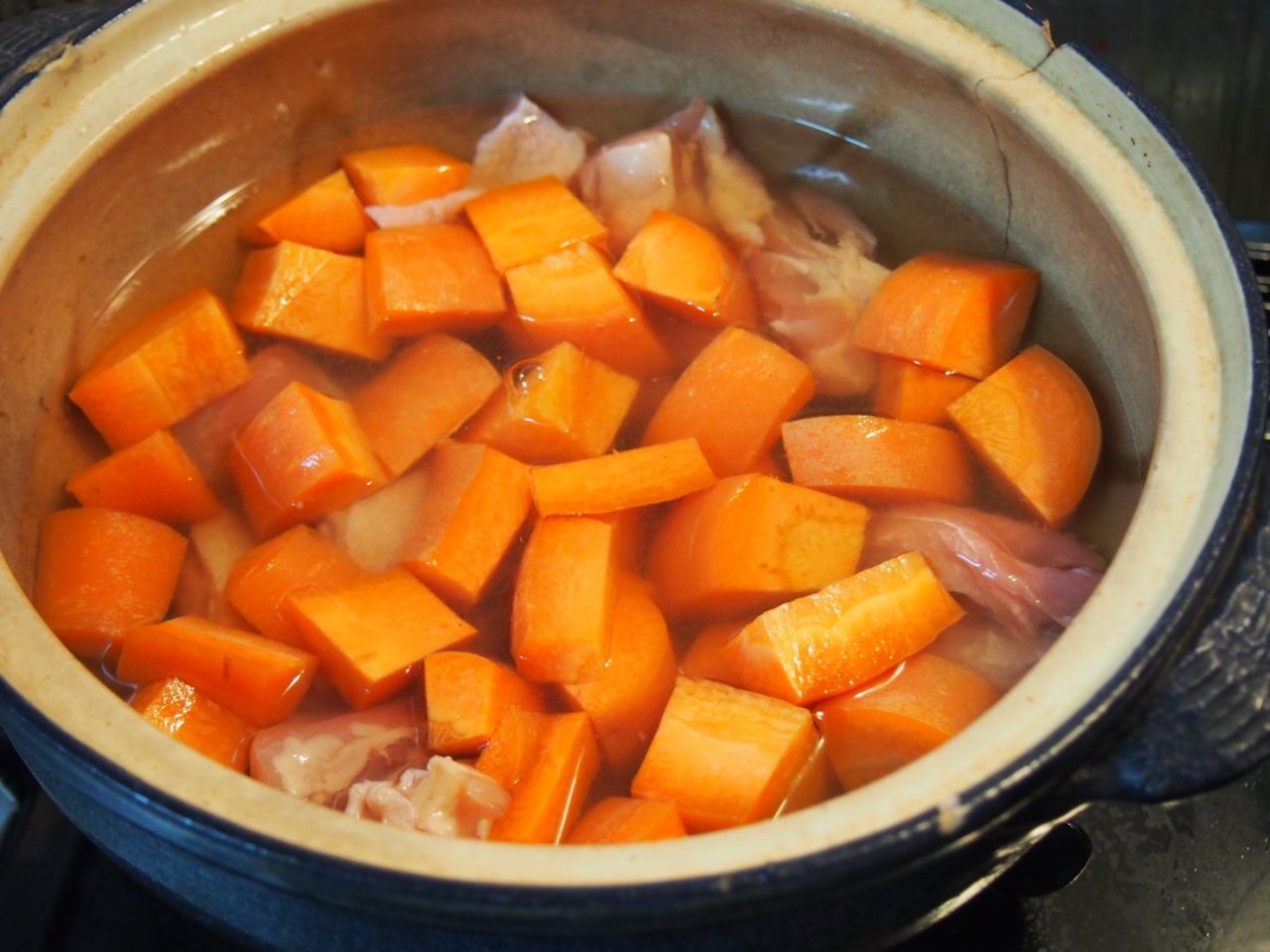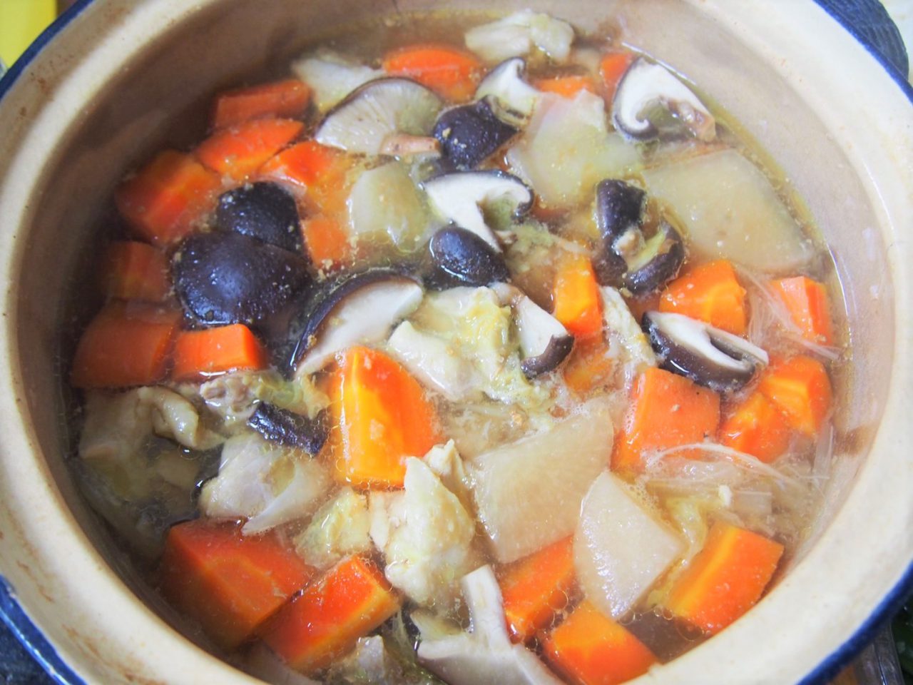 1品目の土鍋煮込み、我が家はストーブの上に1時間ほど放置してできあがり!柔らかく味が染みた人参は、野菜をあまり食べたがらない息子にも大ヒット!もりもり食べていました!