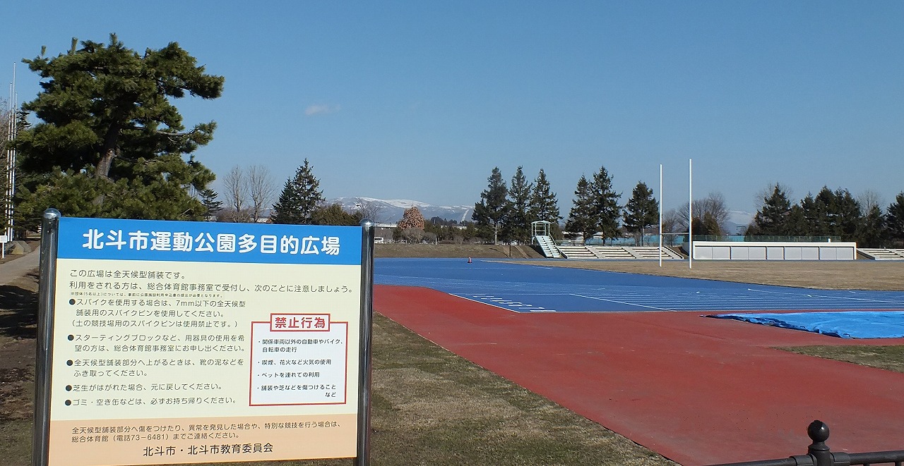 ※令和5年度中は、トラック改修工事等で競技場内での練習はできませんが、千代台公園内の多目的グラウンドや野球場や競技場の外周コースなどを有効に活用して練習します。時には、北斗市運動公園内陸上競技場を借りて練習することも予定しています。