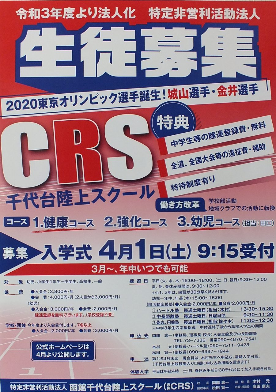 【令和5年度 生徒募集】NPO法人 函館千代台陸上スクール(CRS)