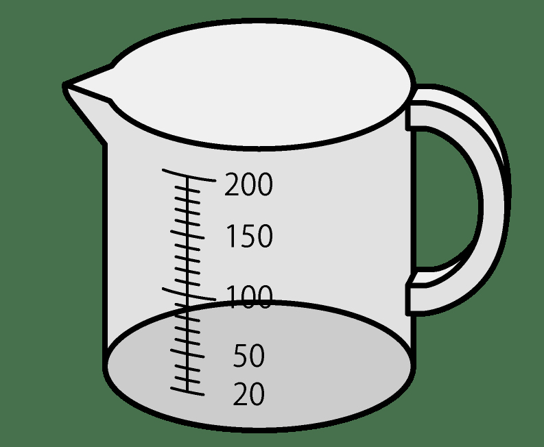 ⑤空の牛乳パック(1ℓ=10㎗)に水をいっぱい入れて、計量カップ(2㎗=200㎖)に注ぐと何回分になるか試してみる。