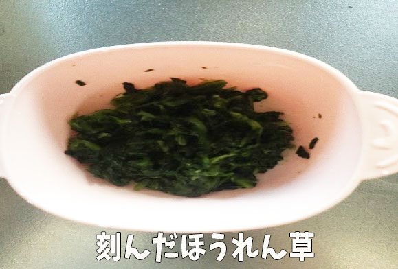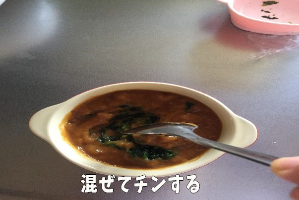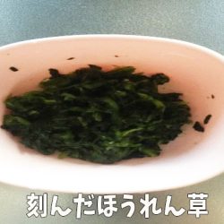 「レトルトカレーを使ったほうれん草カレー」所要時間 3分(離乳食作りの時間は除く)