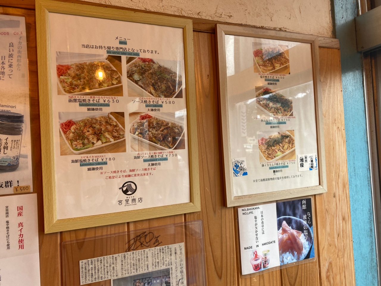 2017年9月にオープンした港まちの宮里商店。定番の塩焼きそば、ソース焼きそばは子どもから大人まで世代を問わず人気です。熟成塩辛焼きそばは、塩辛が苦手な方でも美味しく食べられると好評です。テイクアウトがメインですが、店内や店外のベンチで食べていく事も可能。コロナが流行し、閉鎖的になってしまった子どもたちを思い2022年4月からは店内に駄菓子コーナーも設置しました。天気のいい日には、近所の子どもたちがお店の前に集まりみんなで遊ぶ光景も見られる昭和の空気が残るお店です。※電話注文可、駄菓子だけの購入可
