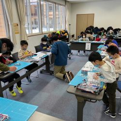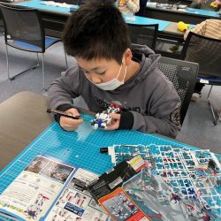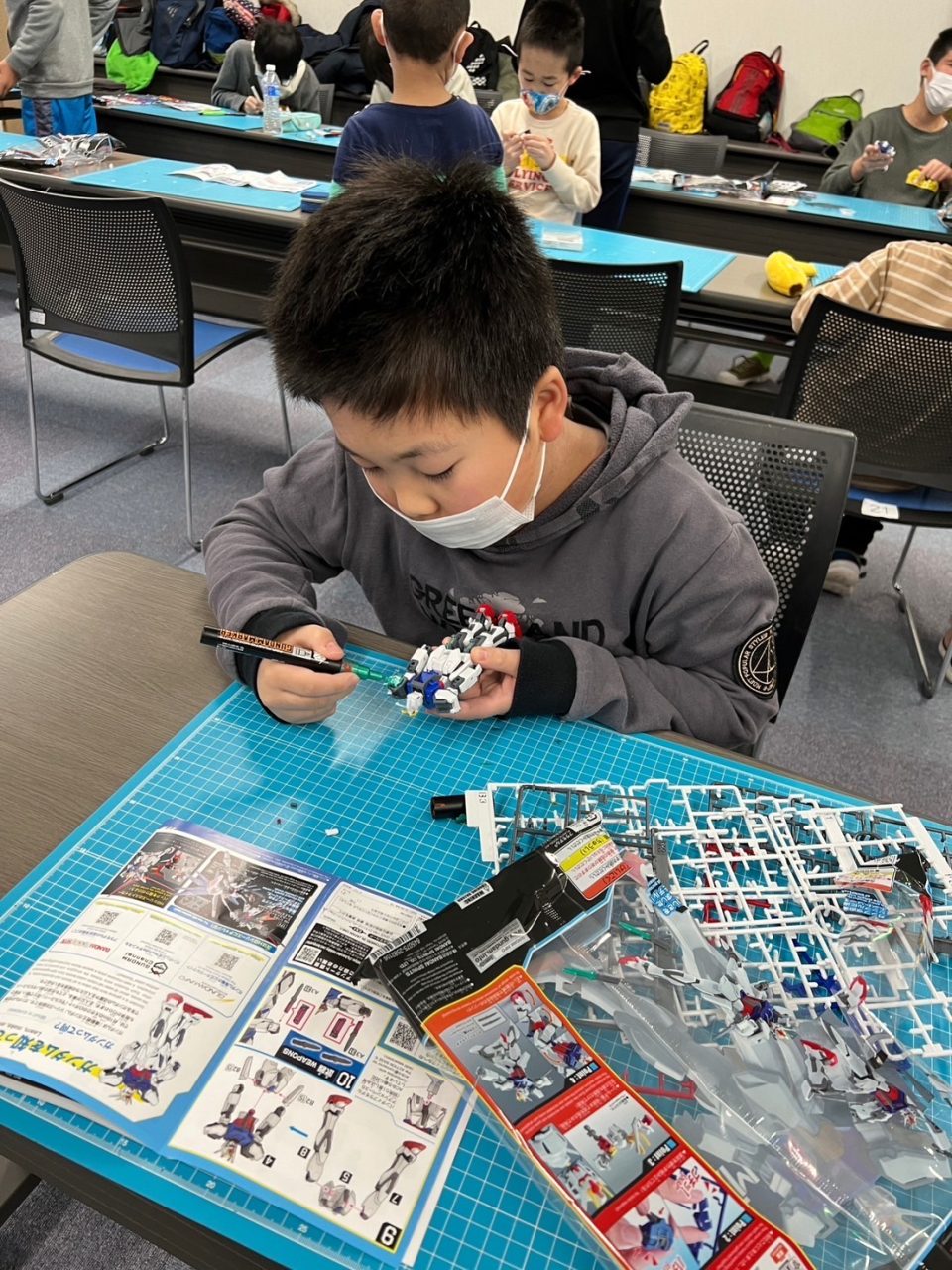 無事、時間内に完成できた子どもたちは、難しかったけれどかっこよく作ることができて楽しかったと満足な様子でした。ガンダムの溝部分に色をいれ輪郭をはっきりさせる「墨入れ作業」も好評だったようです。