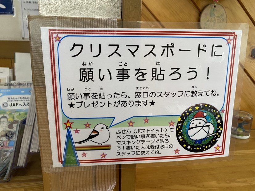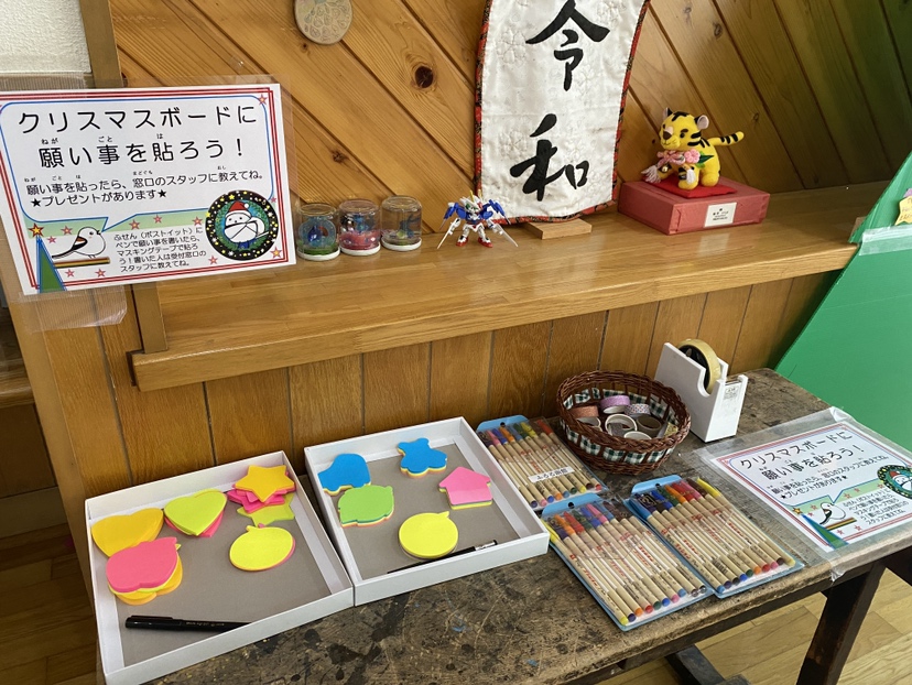 \クリスマスツリーに願い事を書くとお菓子がもらえるよ♪/