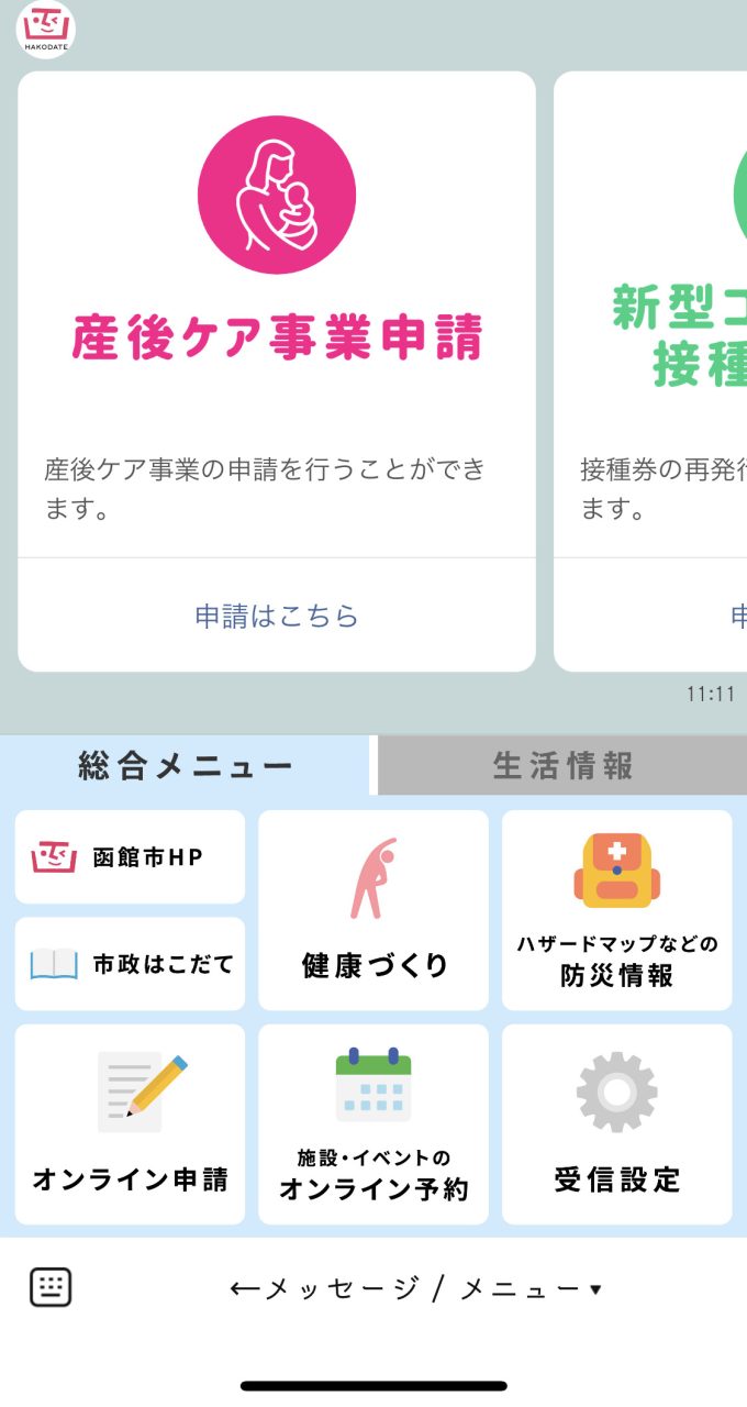 道南の皆さんのお住まいの地域でも宿泊型や訪問型がすでに入っているよというところもあると思います。函館市は今年4月から宿泊型に加えて訪問型・通所型の助成を始めて産後ケアの拡充を行いました。実はこの3種類がぜんぶそろって使える自治体って、北海道の中では少ないんです。ママ達が選べる選択肢は多い方がいいと私は思うので、よかったなと感じています。使いたいです!って思ったときにラインで申請できる様になったのも気軽で身近に感じてもらえていいんじゃないかなと思っています。(函館市をLINEで友だち追加し、メニューからオンライン申請を選択するとOK)