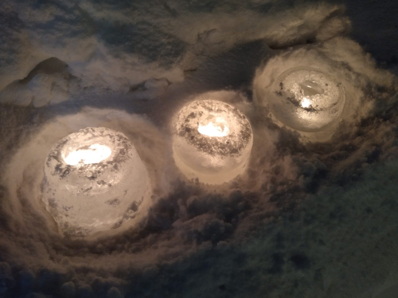 読者の皆様こんにちは。厳しい寒さが続きますがお変わりありませんか。1月末の連日の真冬日では世の中も体の芯も凍り付いて、私はロボコップ(ご存知ですか?)みたいな動きで雪かきしてました。こんな天気だと気持ちまで沈みがちですが、こんな時こそと「アイスキャンドル」を作ってろうそくの火を楽しみました。