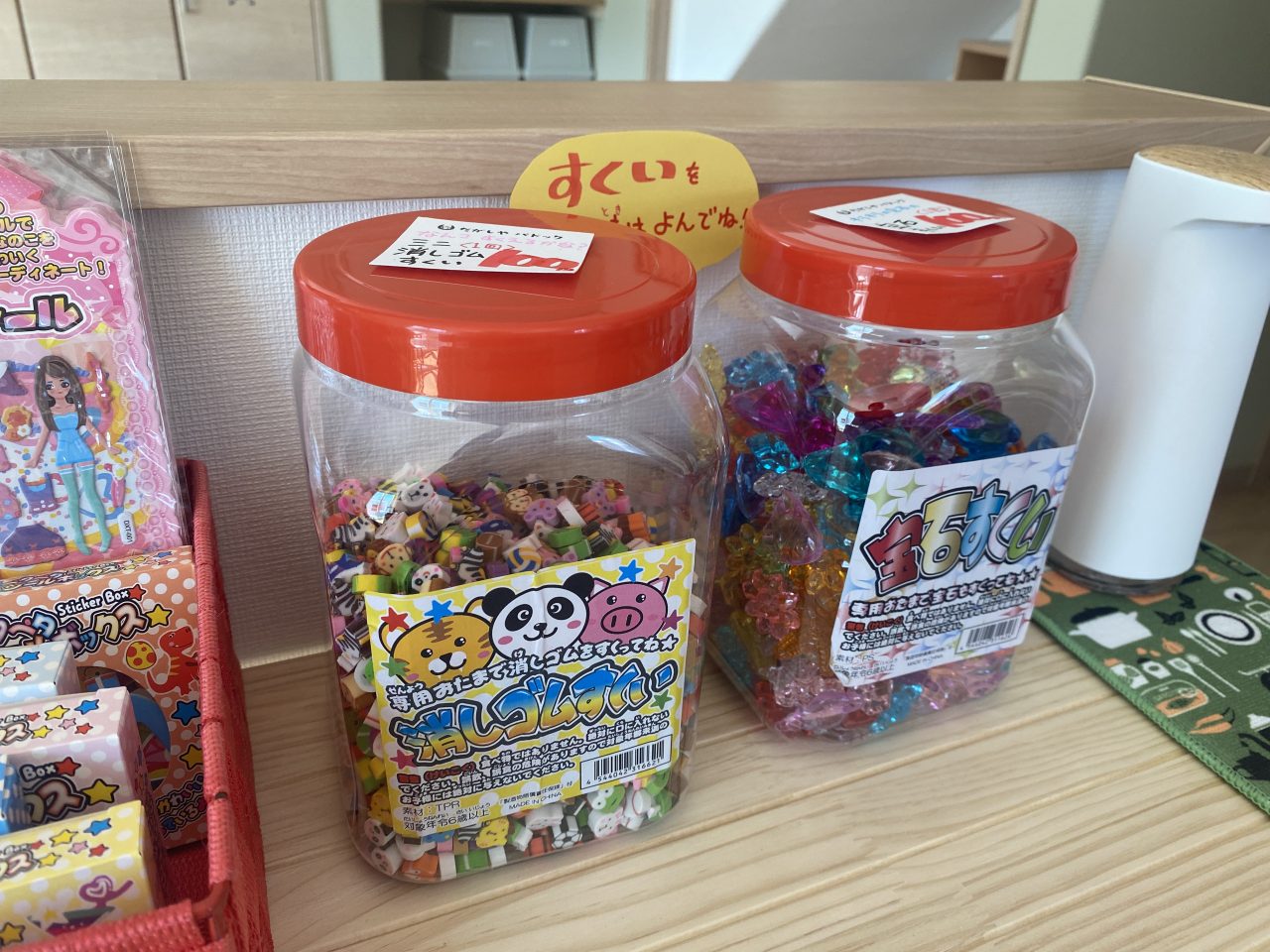 子どもたちが喜びそうなくじもたくさん♪そして、なんといってもミニクレープやたこせんなどフードやドリンクメニューがあるのが嬉しい♪イートインコーナーもあるので、親子で行ってママたちの交流の場にもなりそうです。近くに住んでる子どもたちが羨ましい~!