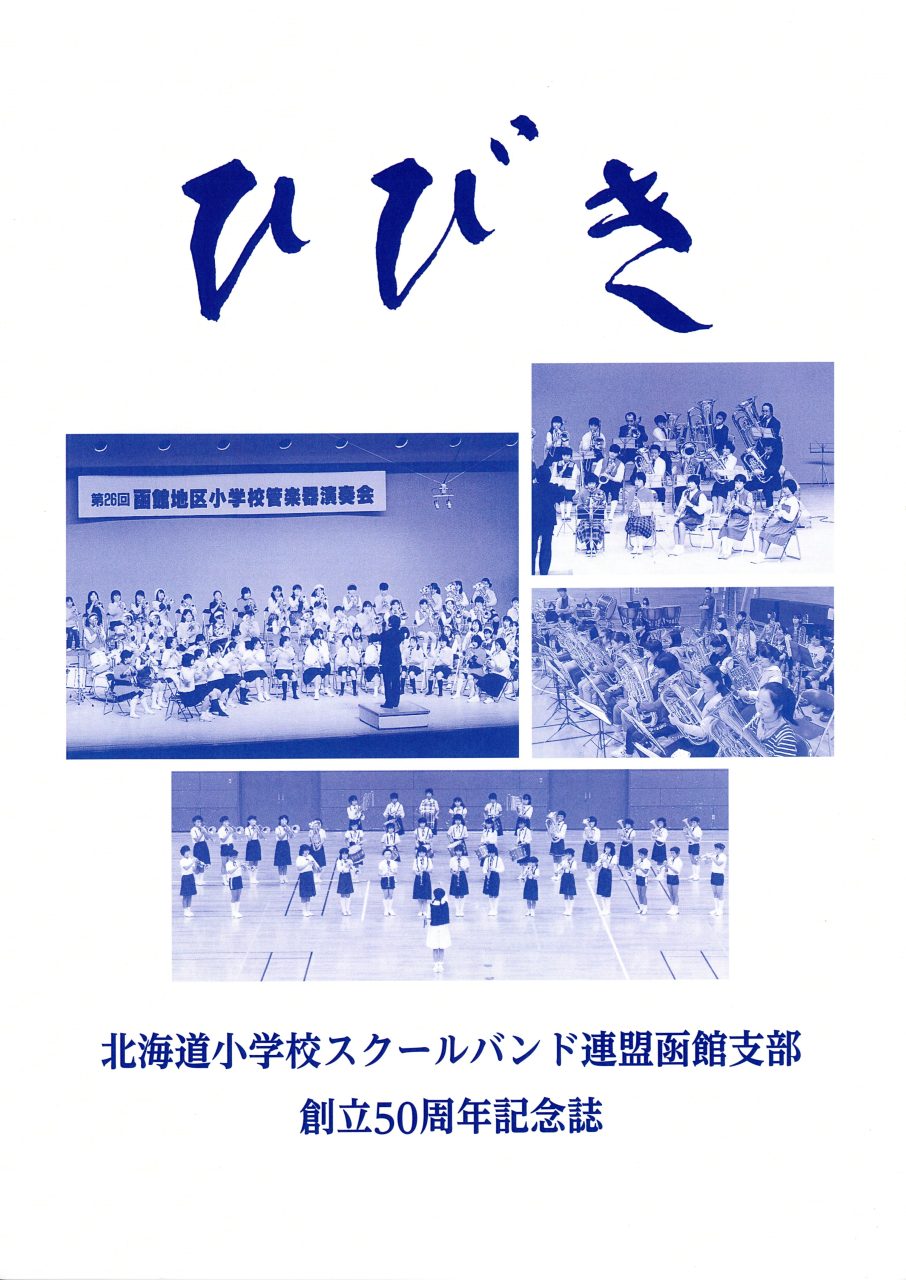 総88ページの記念誌『ひびき』には、渡島教育局・函館市教育委員会・北斗市教育委員会・渡島教育委員会教育長会・函館地区吹奏楽連盟・北海道小学校スクールバンド連盟等の代表者から寄せられた祝詞、顧問や会員からの回想文、現バンドメンバーや卒業生からの寄稿、支部50年のあゆみ、思い出のプログラム等々が満載。現役の時から係わった私にとっては、『ひびき』は思い出の宝箱。何度も読み返しては、函館支部の今後ますますの発展を願っている。