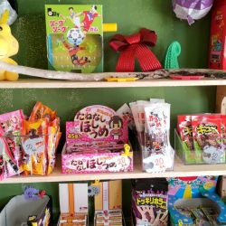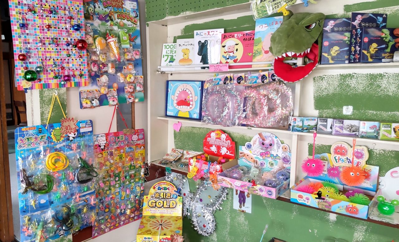 ヤッターめん(10円)、消しゴム(30円)、スーパーボール(50円)何が当たるかわからないひもくじ(100円)等々・・・。子どもだけでなく大人にも大人気です。子ども時代を思い出して( ^^)いるようです。