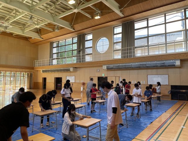 カンナや紙やすりを使用しての作業。デコボコになった机は削るのも大変です。モノを大切に使う事を学び、また木は手入れをすると新品のようになることを実体験。これは是非たくさんの学校で取り入れて欲しいなと思いました。自分の机に愛着が湧き勉強もはかどりそうです。
