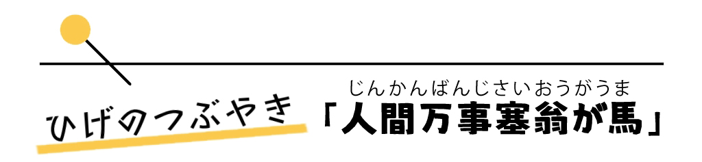 一見、不幸だ、ついてないと思えることにも必ず裏があって、幸運を引き寄せることができる、目先のことに一喜一憂してはならないという教えなのでしょう。年老いた馬を翁が大事に愛情をかけていなかったら、若駒は来なかったのでしょうね。