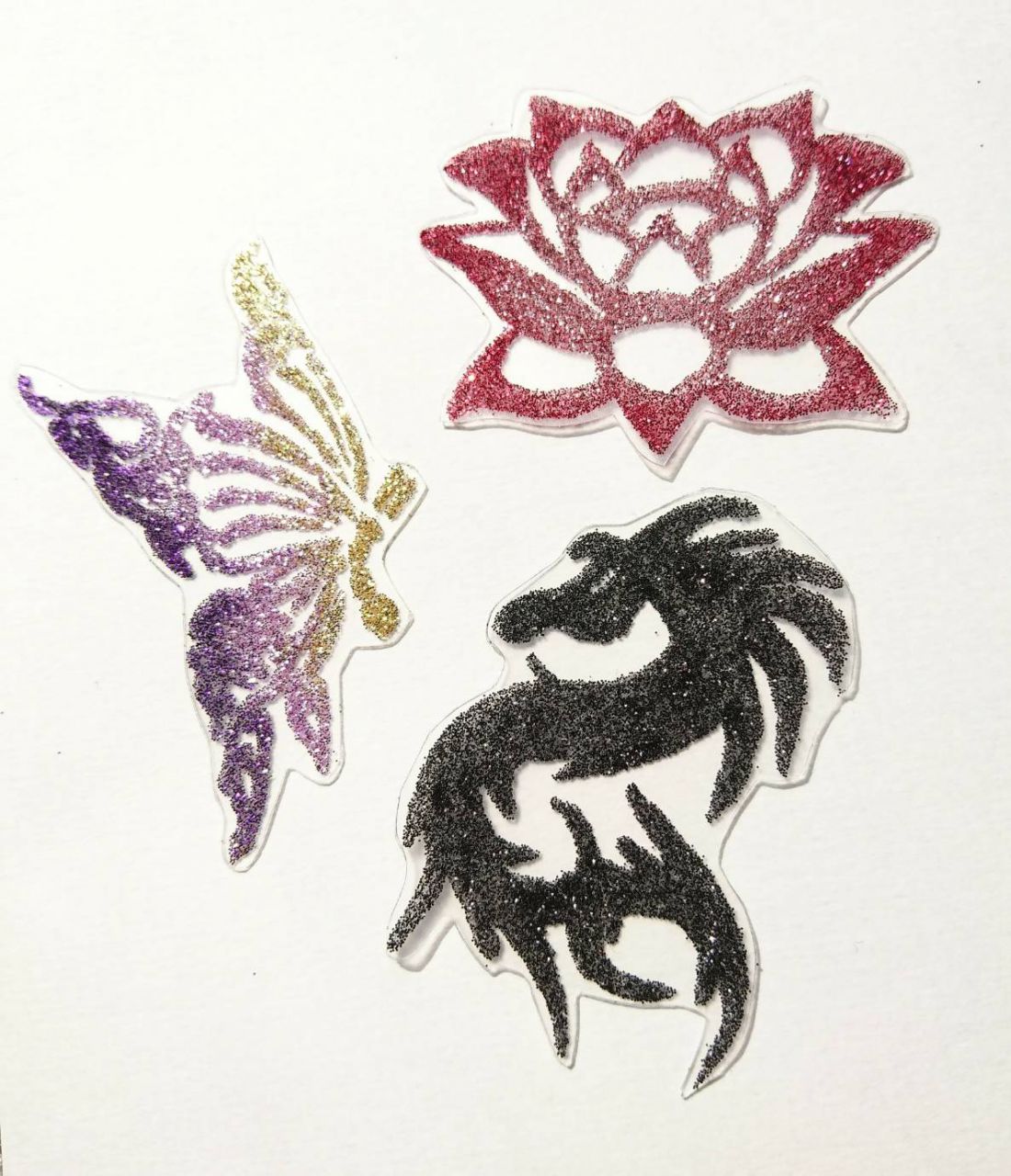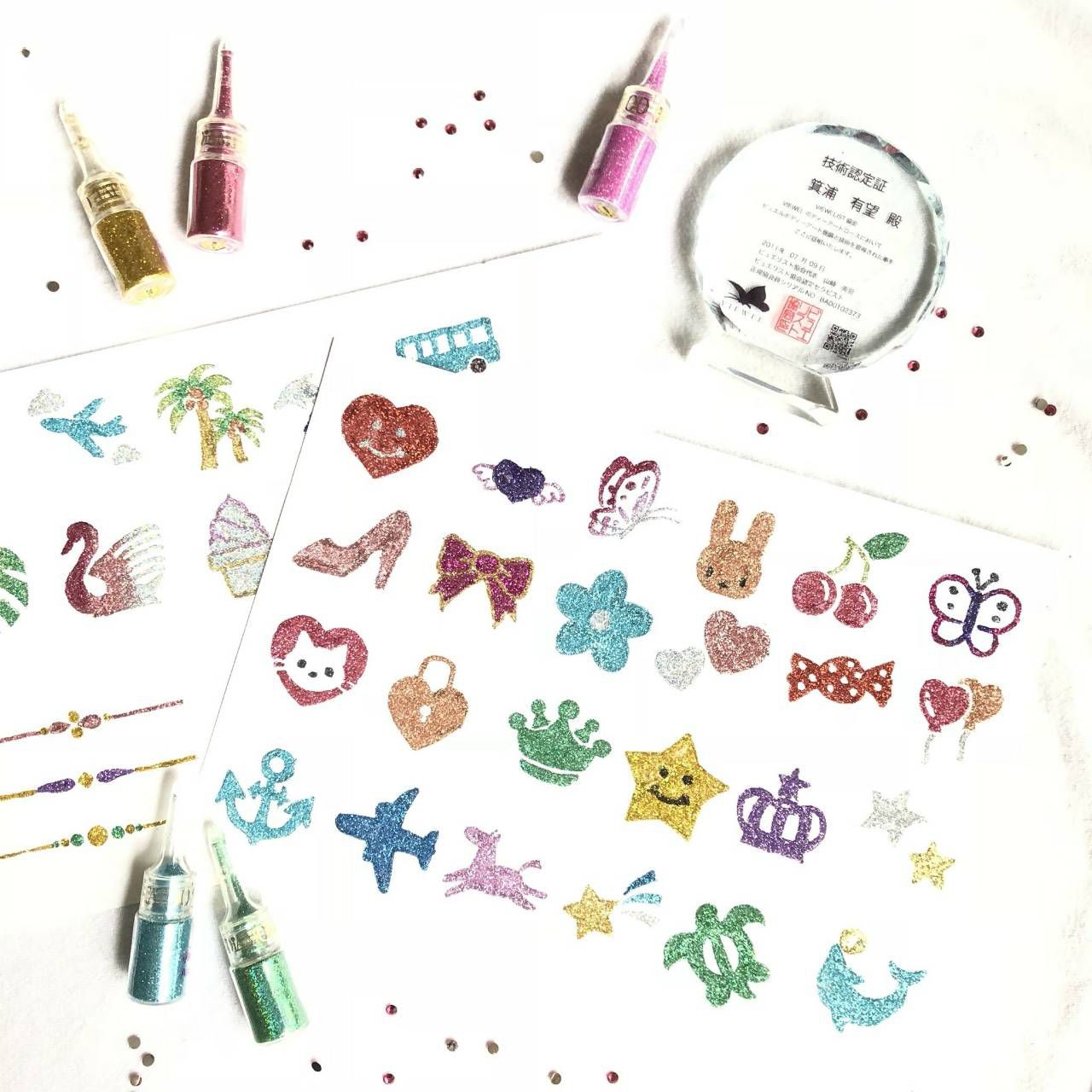通常のボディジュエリーだと、耐水性があるので1週間前後は長持ちするんです。でも、子どもだと学校や幼稚園につけたまま行けない、という親御さんの声を聞き、ボディシールというものを採用しています。医療用のシリコンシートを使っていて、肌が弱いお子さんでも大人でも使用できます。何度も貼ったり剥がしたりできますし、鏡やガラスに貼って保管することで、粘着力がアップする優れものです。