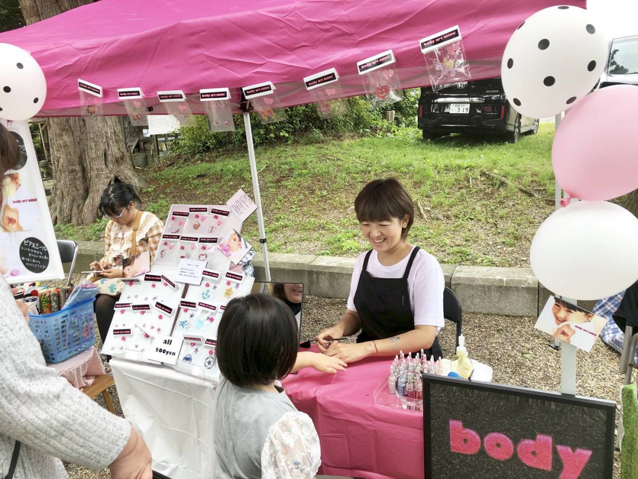 娘さんが喜んでくれたことをきっかけに、ボディジュエリーで子ども達を喜ばせたい、と思うようになったゆみさん。元々好きだったイベント巡りをする中で、『子供向けのイベントの少なさ』を感じていたこともあり、子供向けのブースを出店できるイベントを探し始めます。そして、3ヵ月後には北斗市で開催されたハンドメイドイベントで、ボディジュエリストとしての活動を本格的にスタートさせました。