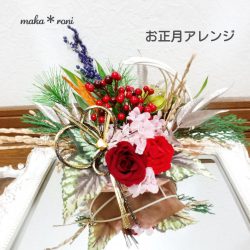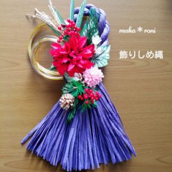 あやこさん そういう方もいましたね~♪(笑)様々な形やカラーのしめ縄からお好みのものを選んでもらい、お花などのパーツで飾り付けていきます。パーツの配置の仕方でとても個性が出やすいしめ縄作り。楽しいですよー☆