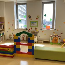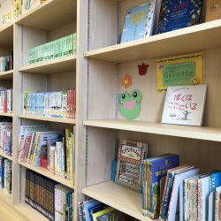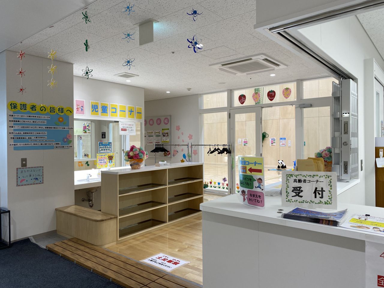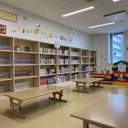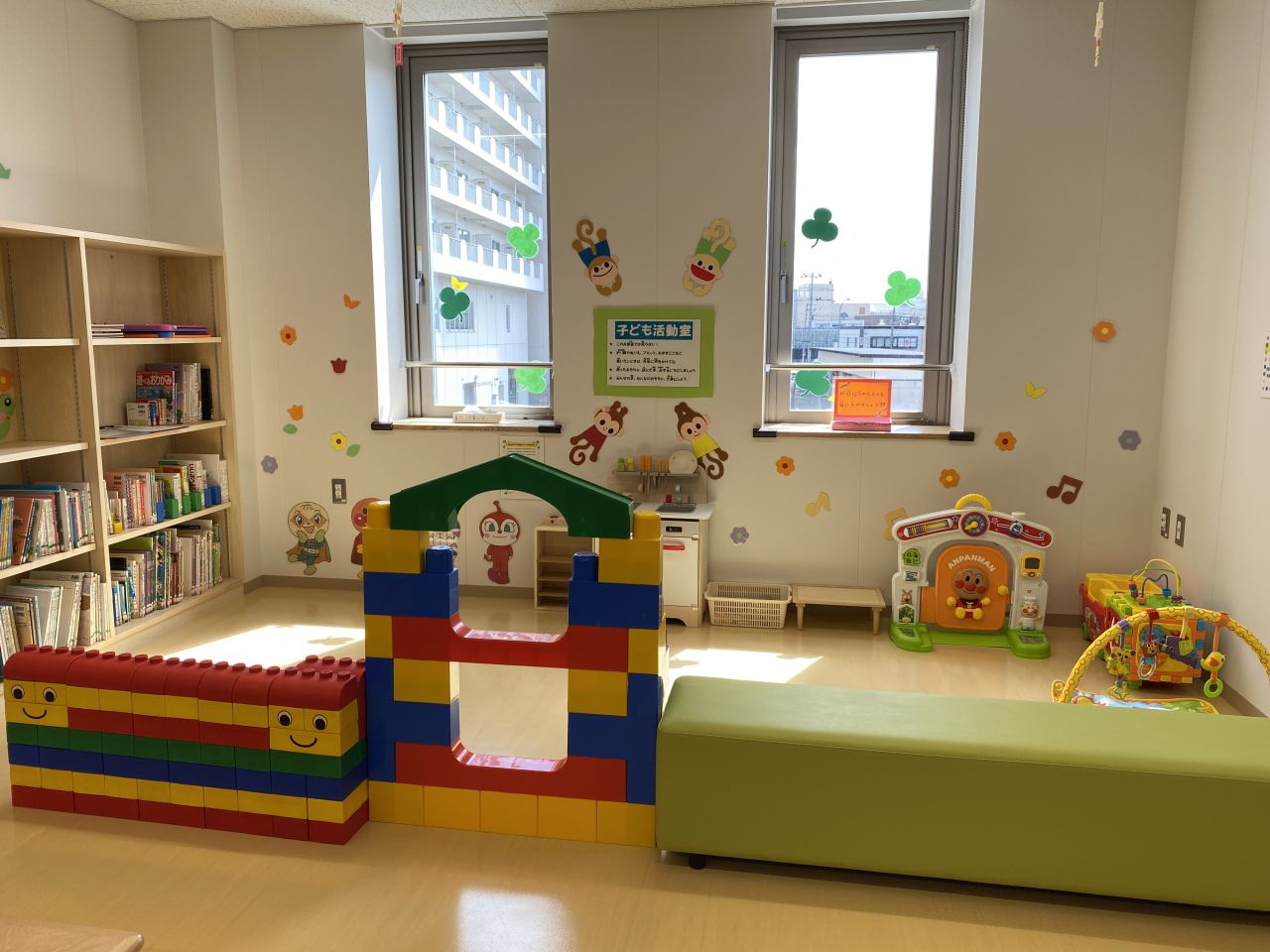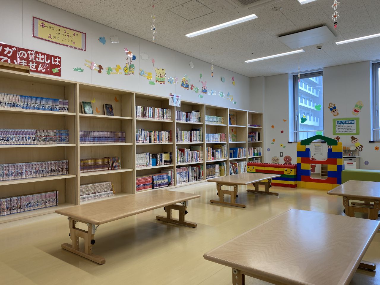 幼児図書、児童図書が置かれ、本を読んだり折り紙、ぬりえ、オセロ、ブロックなどで遊ぶことができます。奥には幼児用のおもちゃスペースもあります。