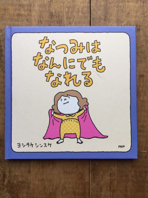 目下、絶好調のヨシタケシンスケさんの絵本です。おそらくギャングな3才児のなつみちゃん、寝る時間なのにお母さんと遊びたくてたまりません。思い付いたのが、ポットや洗濯バサミに変身するクイズ、お母さんはさっぱり当てることができません、当たらないのに怒るなつみちゃん、「おこるんだったらやんないよ!」と、お母さん。そんなお家でもよくあるやりとりがあちこちに散りばめられていて笑えます。最後はなつみちゃんが大好きな〇〇〇〇〇に変身して沈没!さあ、お子さんと変身クイズをやってみましょう!!