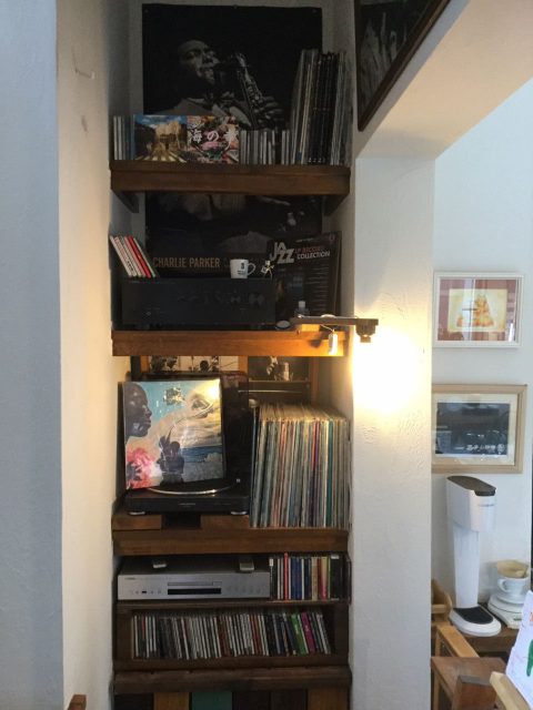 ひっぽのBGMはJAZZにこだわっています。店を始める時は、コーヒーを淹れながらのんびりとJAZZのレコードをかけて…なんて思っていました。しばらくステレオのコンポから遠ざかっていたので、BOSEのスピーカー、ヤマハのアンプ、オーディオテクニカのターンテーブルなどなど買って、レコードコーナーを作りました。