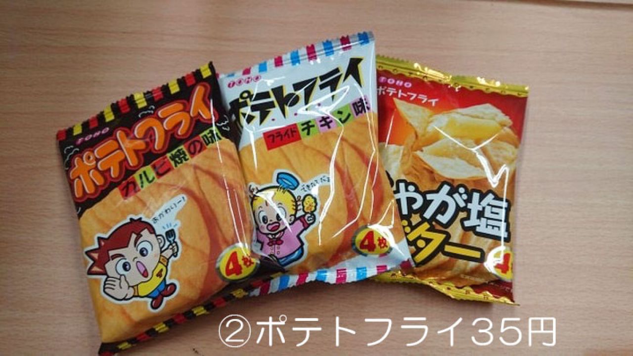 ②ポテトフライ(35円)スナック系といえばこれ!パリパリとした軽い食感と濃い味がクセになります。