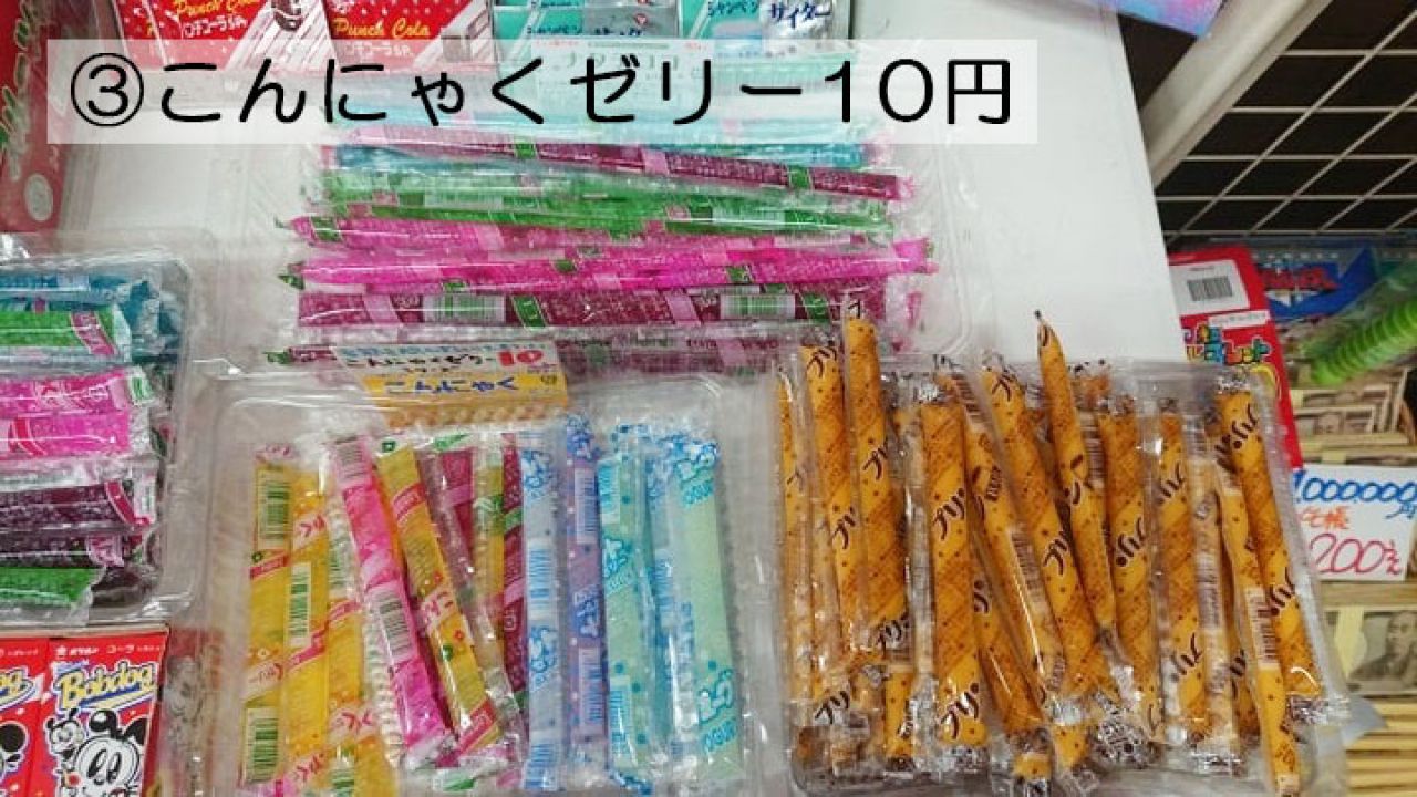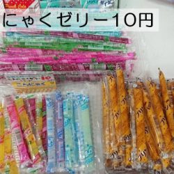 ③こんにゃくゼリー(10円)季節を問わず食べられています。冬でも凍らせて食べる人が多いです♪