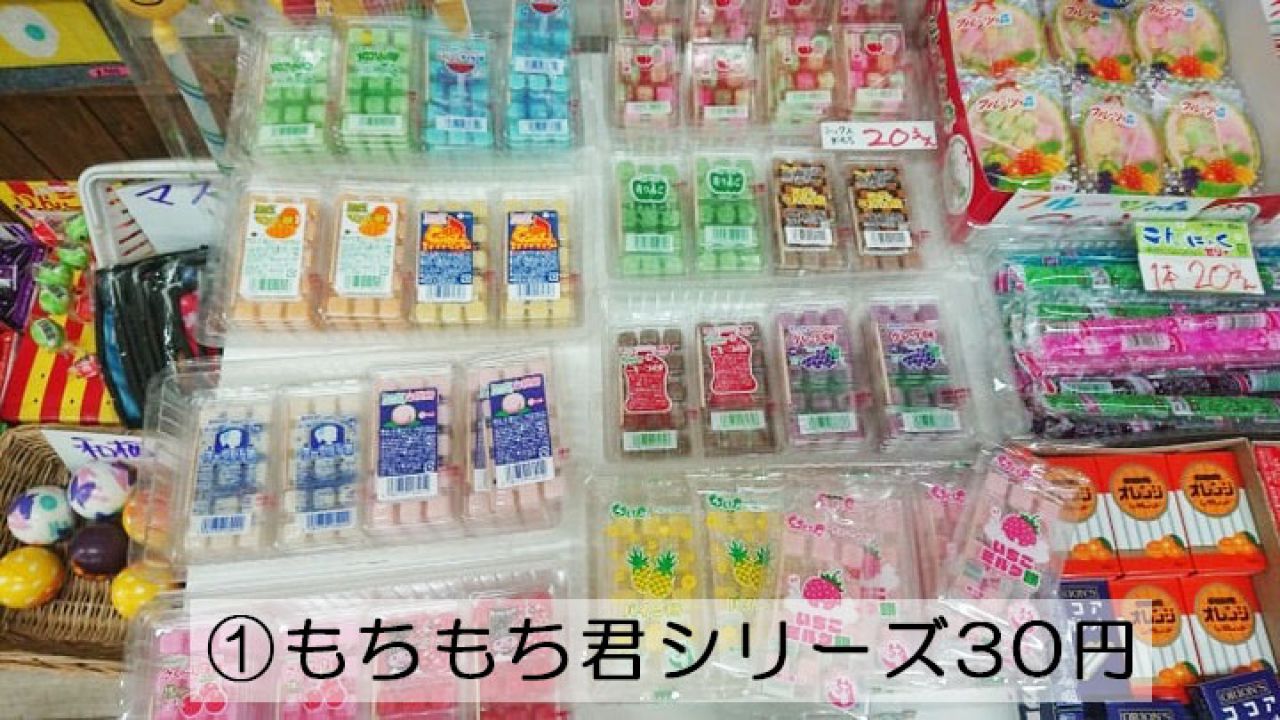 ①もちもち君シリーズ(30円)味の種類が豊富で全13種類。大人から子供までよく購入される人気商品です。