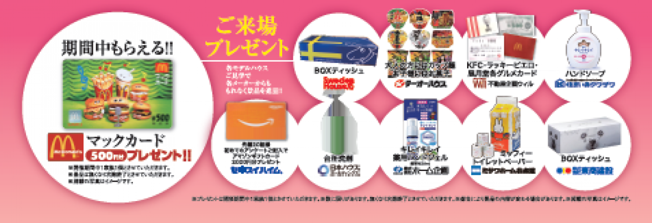 ※各モデルハウスご見学で各メーカーから景品をプレゼント!