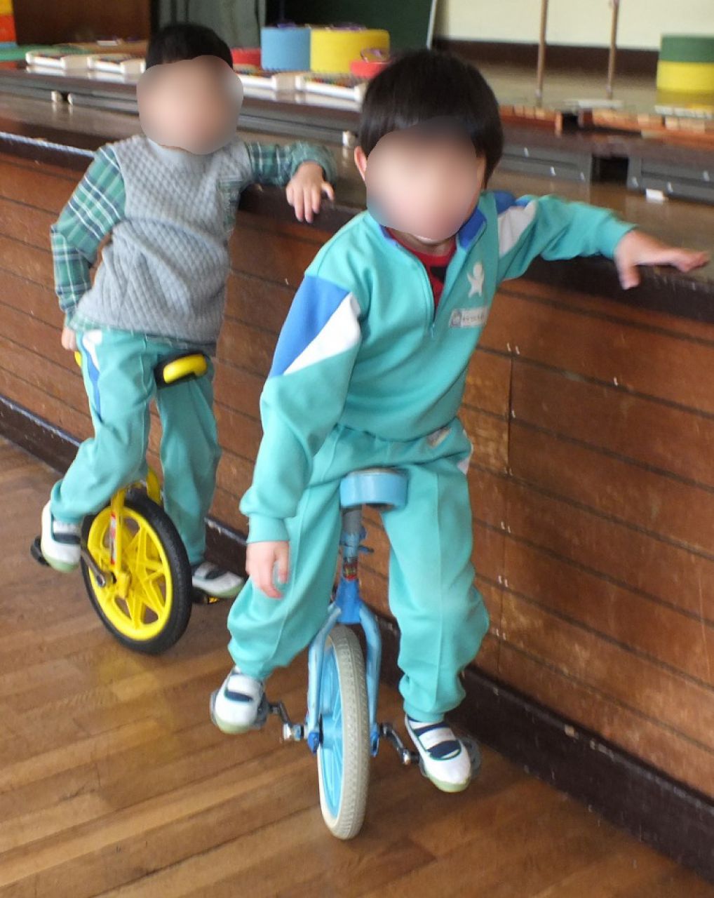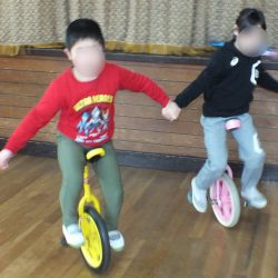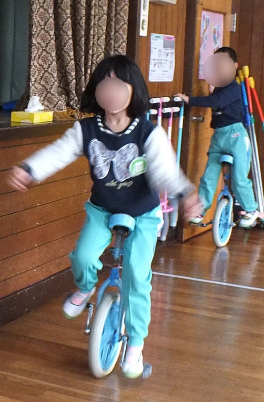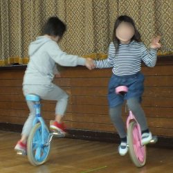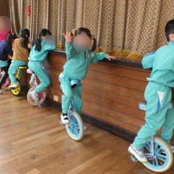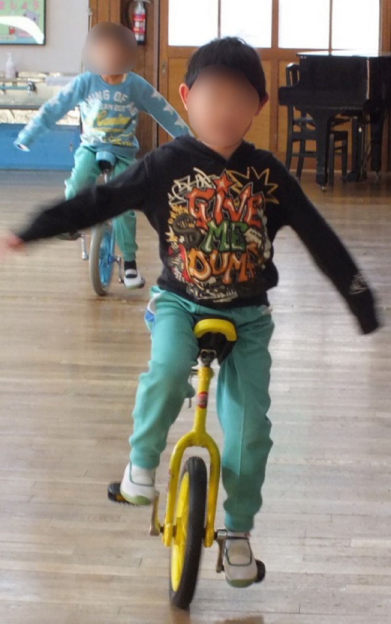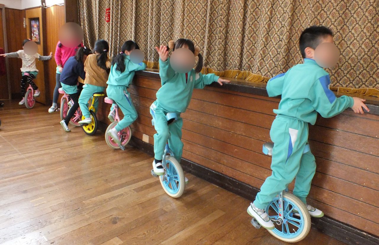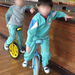 あつまさ先生 そうです。小学校の教員時代、特に小規模校勤務の時は、体育授業で積極的に一輪車を取り入れたところ1年生でも短期間で乗れるようになったので、幼稚園児にも挑戦させてみようかなと思いました。