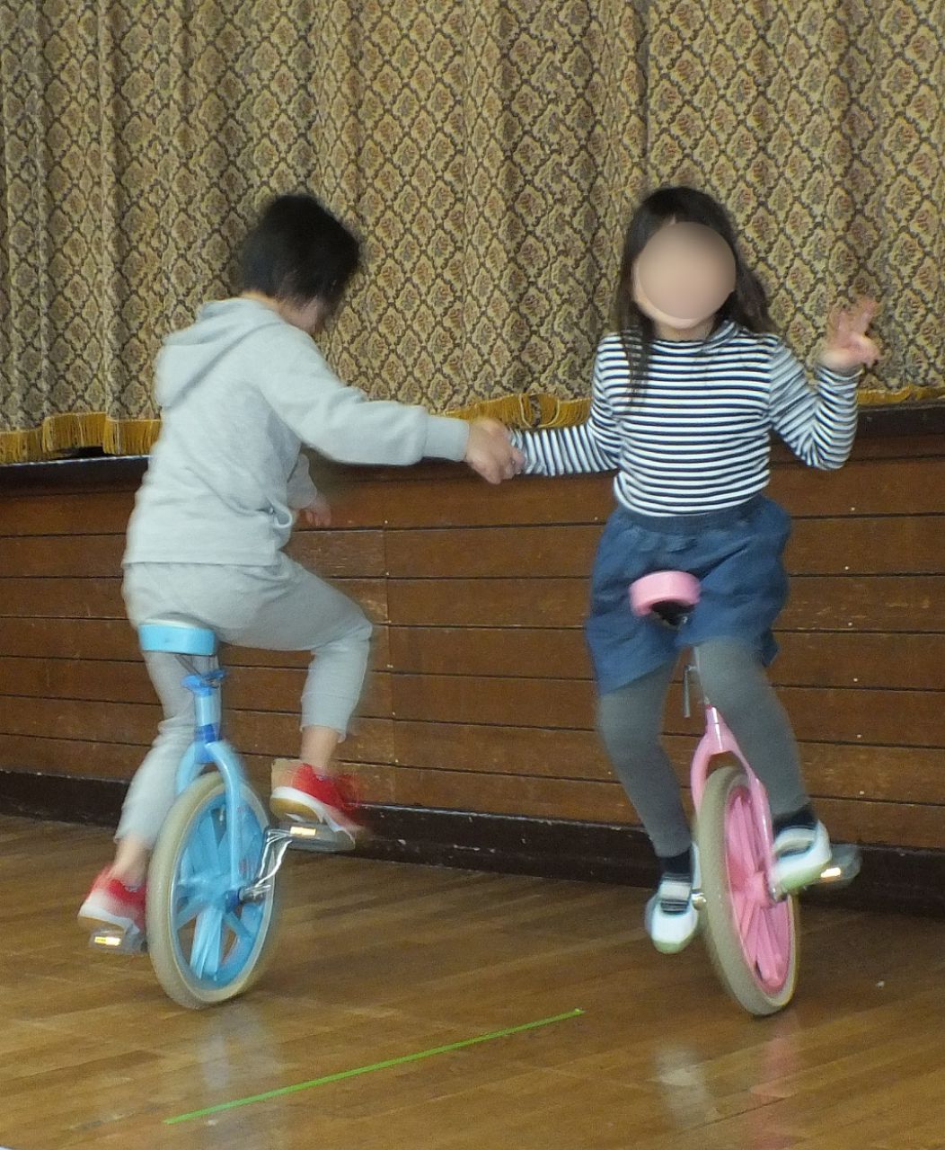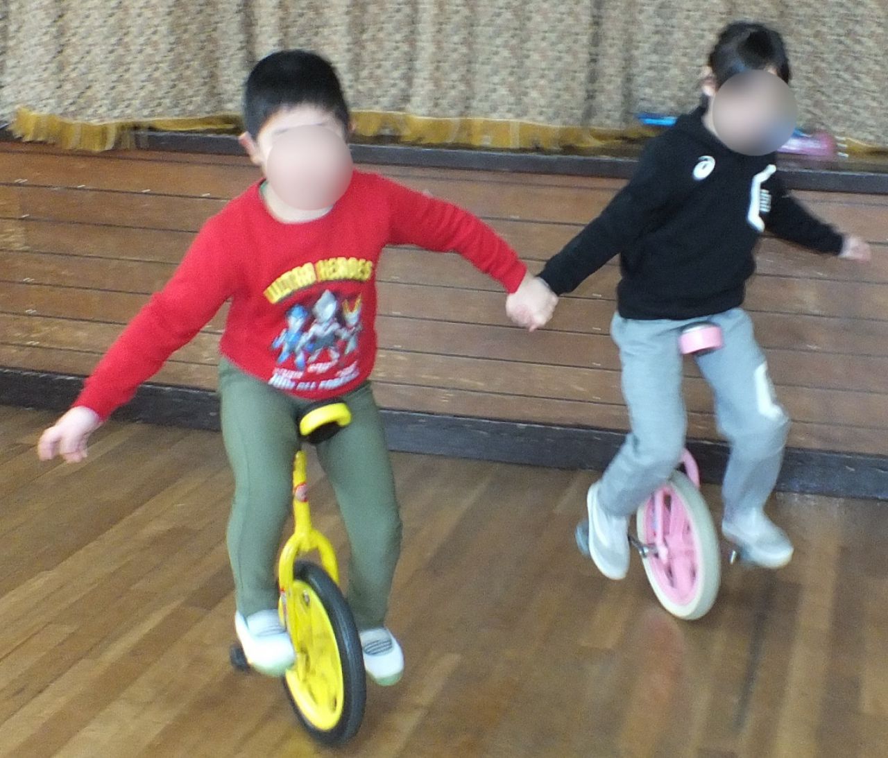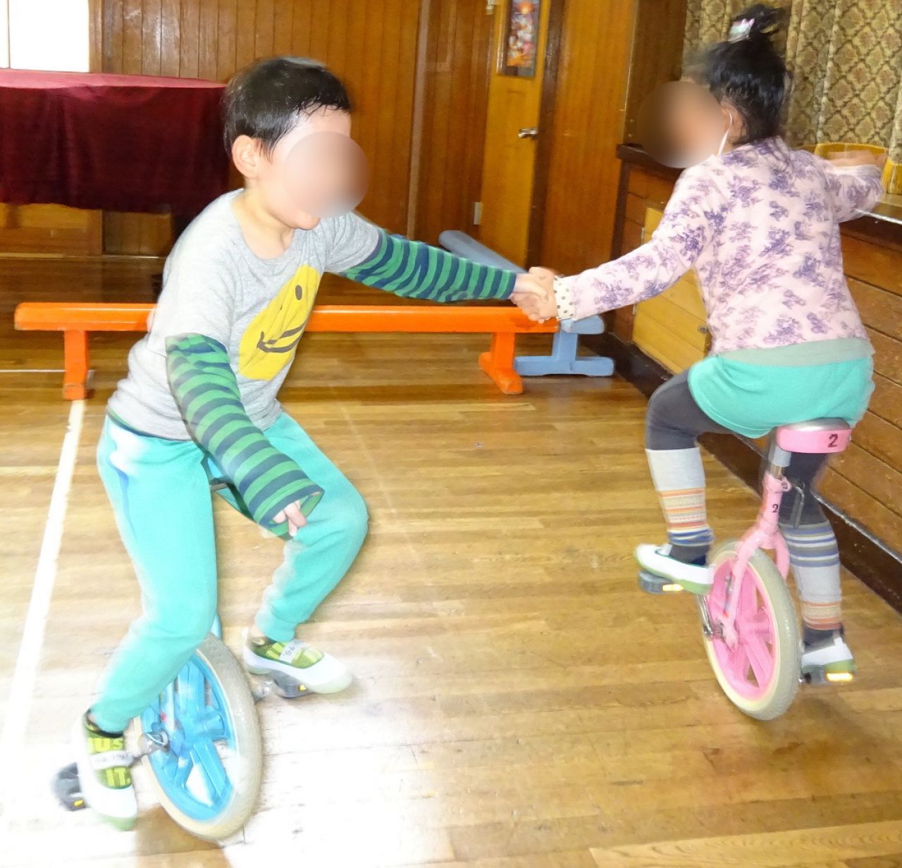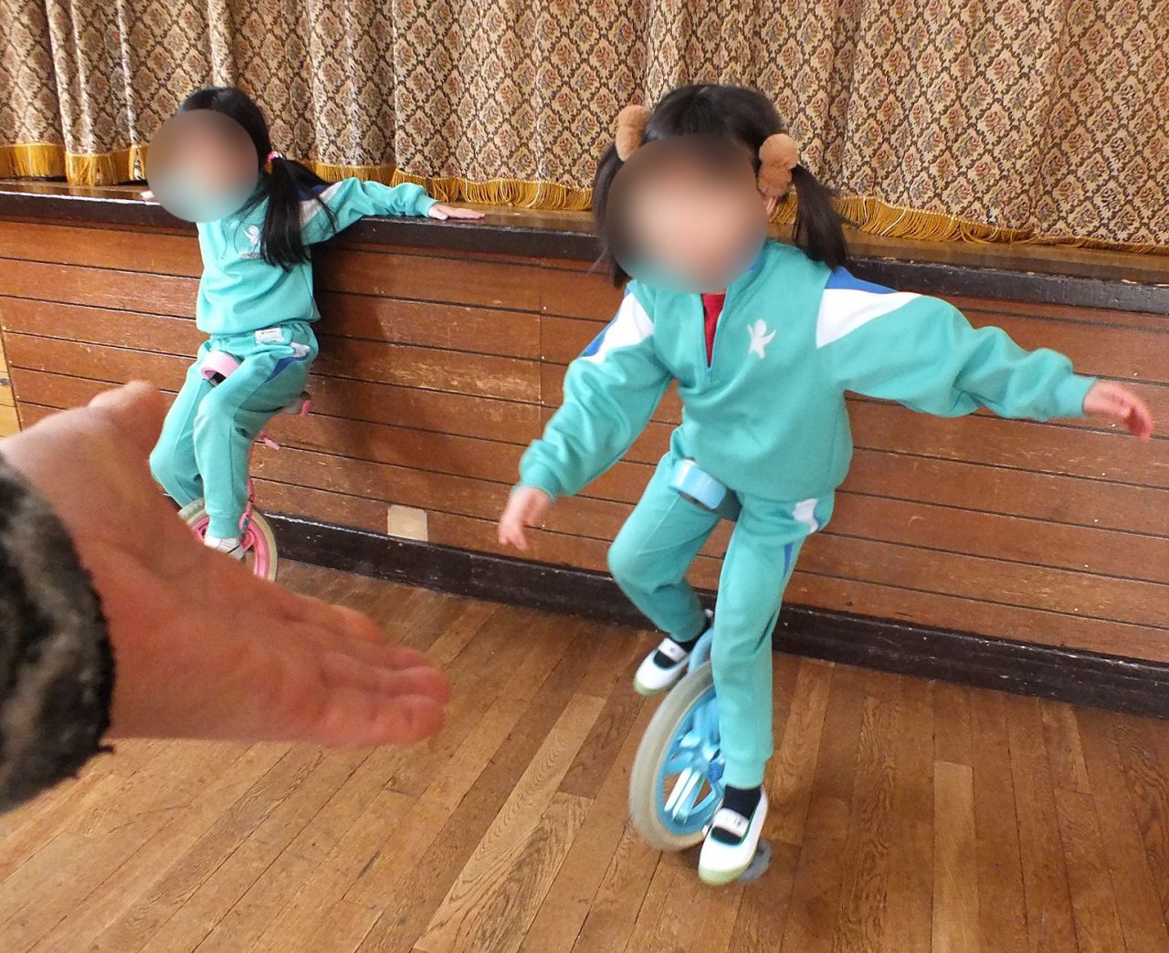 あつまさ先生 そうです。小学校の教員時代、特に小規模校勤務の時は、体育授業で積極的に一輪車を取り入れたところ1年生でも短期間で乗れるようになったので、幼稚園児にも挑戦させてみようかなと思いました。