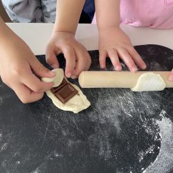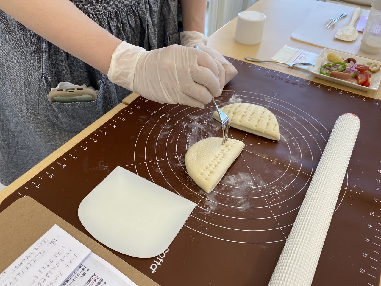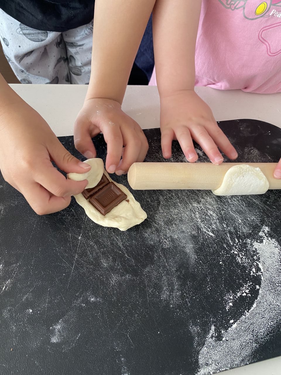 後日、西村先生と一緒に作った生地を使って自宅で子どもたちとおうちパン作りをしました♪
