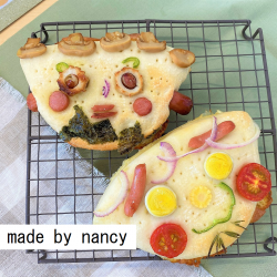 ・顔のパーツになるような具材(今回は、ミニトマト、海苔、赤い玉ねぎ、ちくわ、マッシュルーム、ソーセージ、ヤングコーン、ピーマン、豆、ローズマリー、うずらの卵を用意)