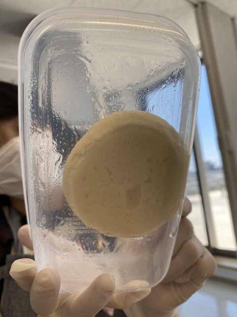 生地が1.5~2倍程度に膨らむと発酵完了です!(裏側はポコポコ気泡が入ります)