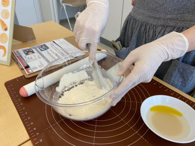小さなボウルに入れた材料は”仕込み水”といい、事前に合わせて置くことで簡単に生地作りができます♪