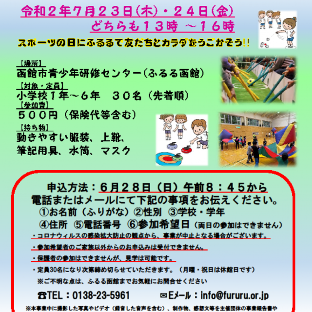 7月23日、24日「みんなで遊ぼう!ふるるスポーツの日」スポーツの日にふるるで友だちとカラダを動かそう!