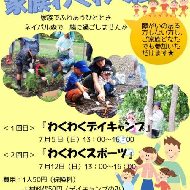 7月5日(日)、12日(日)ネイパル森で開催のデイキャンプとスポーツのイベント♪自然の中で過ごす家族時間(^^)/