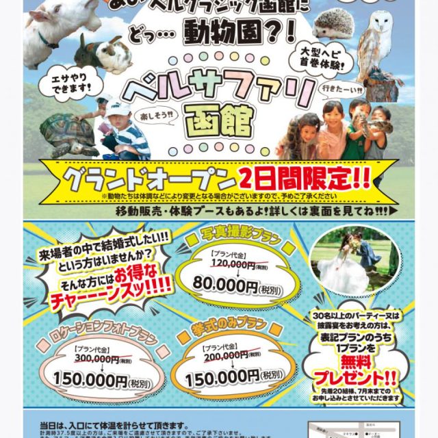 ベルクラシック函館で7月18日(土)19日(日)の2日間開催のベルサファリ函館♪WeddingFestも同時開催です(^^)/