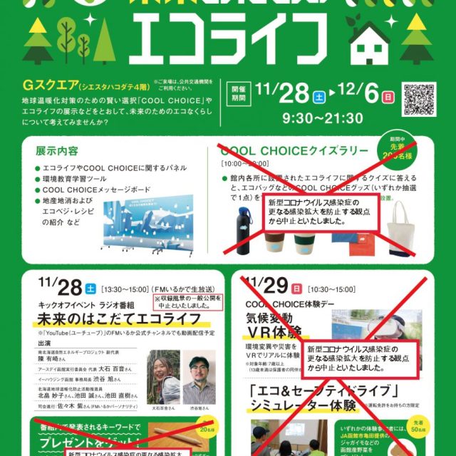 2020年11月28日(土)~12月6日(日)【はこだてエコライフ展2020「未来のためのエコライフ」】が函館コミュニティプラザGスクエアで開催されます!