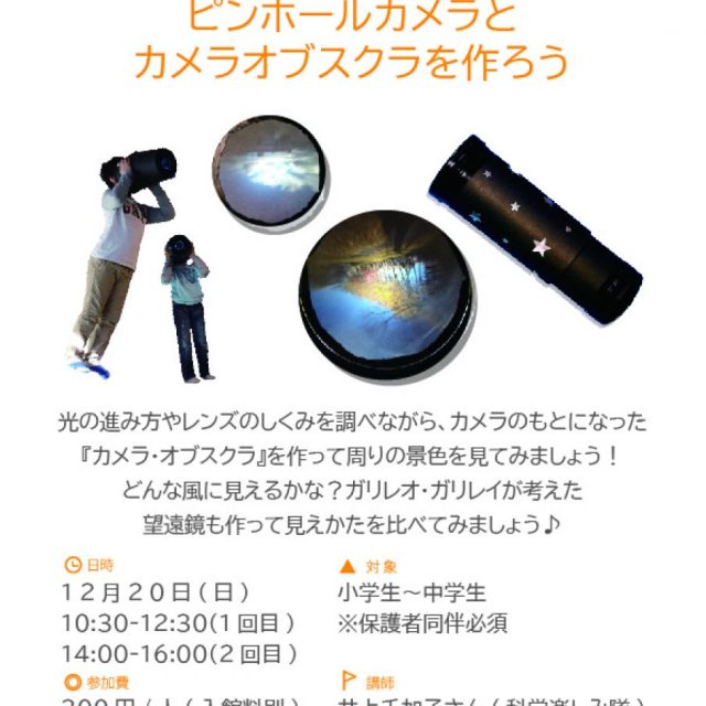 12月20日(日)はこだてみらい館で親子科学ワークショップ【ピンホールカメラとカメラオブスクラ】が開催されます♪カメラオブスクラと望遠鏡を作ります(^^♪冬休みの自由研究にもなりますね♪