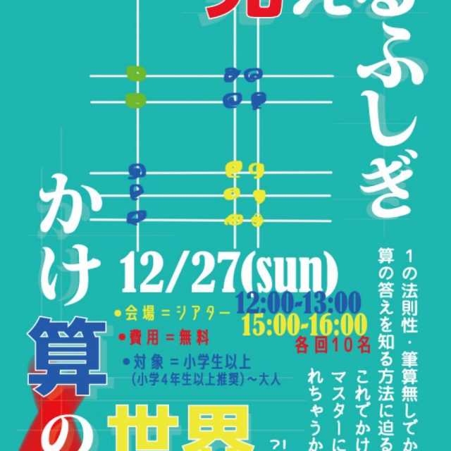 12月27日(日)はこだてみらい館で【教えて!!みらい先生「見えるふしぎ かけ算の世界」】が開催されます♪筆算しないで答えがわかるかけ算、大人も知りたい!!みらいの先生と楽しく数について学びましょう✏
