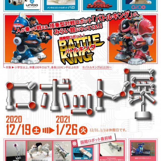 2020年12月19日(土)~2021年1月26日(火)【ロボット展】がはこだてみらい館で開催されます♪人が乗って戦える、搭乗型対戦ロボット「バトルキング」がやってきますよ!