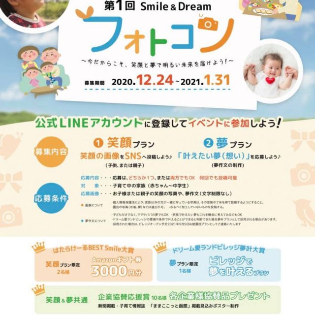 【第1回 Smile&Dreamフォトコン】みんなの「笑顔」と「夢」大募集!お子さま・親子の笑顔の写真をSNSに投稿、又は叶えたい夢を応募しよう!