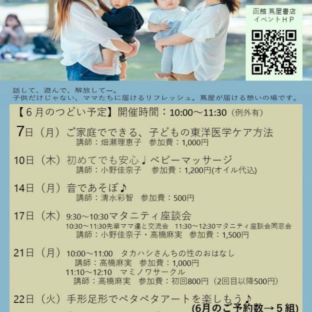 2021年6月に函館・近郊で開催される、おやこ・ママ・パパ・キッズ・プレママ向けのイベント情報をママスタッフが集めてきました♪
