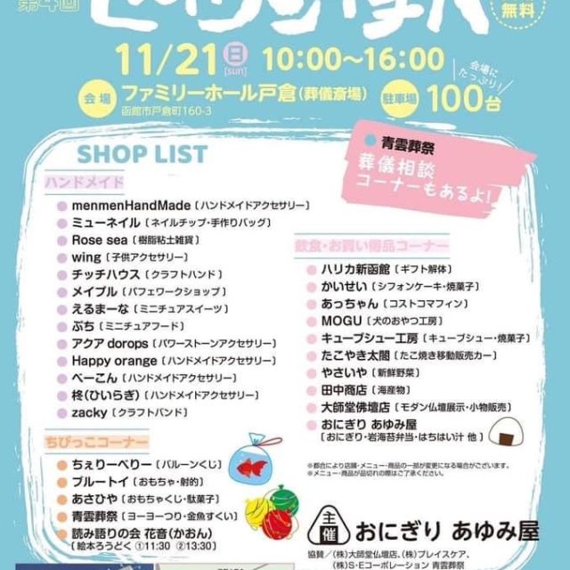 イベント2021/11 2021年11月に函館・近郊で開催される、おやこ・ママ・パパ・キッズ・プレママ向けのイベント情報をママスタッフが集めてきました♪ 寒くなってきましたねぇ~暖かくしてお出かけしましょう(^^)