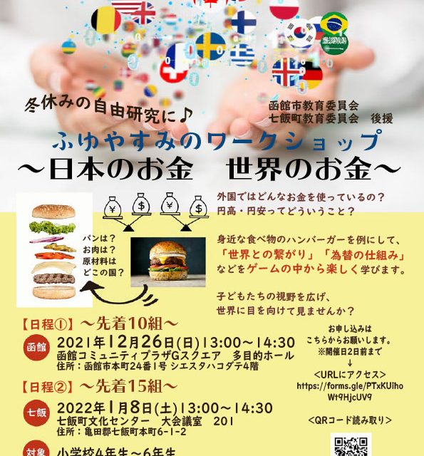 イベント ふゆやすみのワークショップ~日本のお金 世界のお金~ 12月26日(日) 12月26日(日)函館コミュニティプラザGスクエア 多目的ホールで開催される【ふゆやすみのワークショップ~日本のお金 世界のお金~】をご紹介♪冬休みの自由研究にピッタリのイベントです(*^^*) おやこ体験学ぶ 2021.11.29 おやこイベント