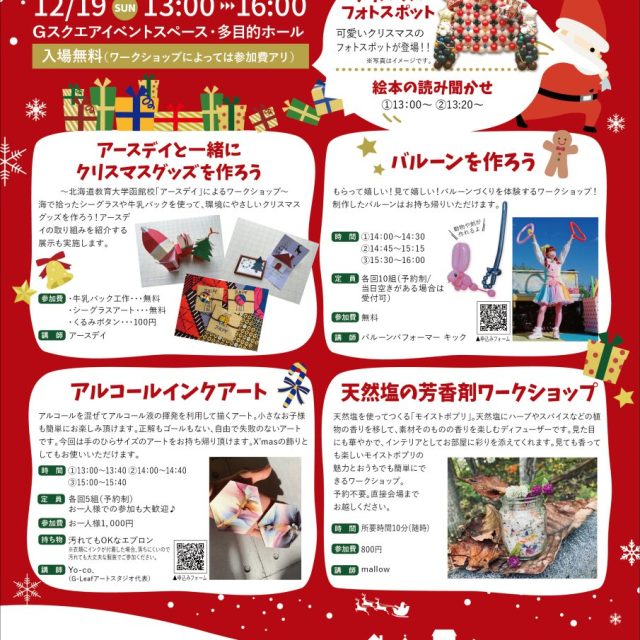 イベント Gスクエア CHRISTMAS 12月19日(日) 12月19日(日)Gスクエアで開催の【Gスクエア CHRISTMAS】をご紹介♪当日申込で参加できるワークショップもあるそうですよ♪ おやこキッズ2021クリスマス体験作る 2021.11.22 おやこイベントキッズ