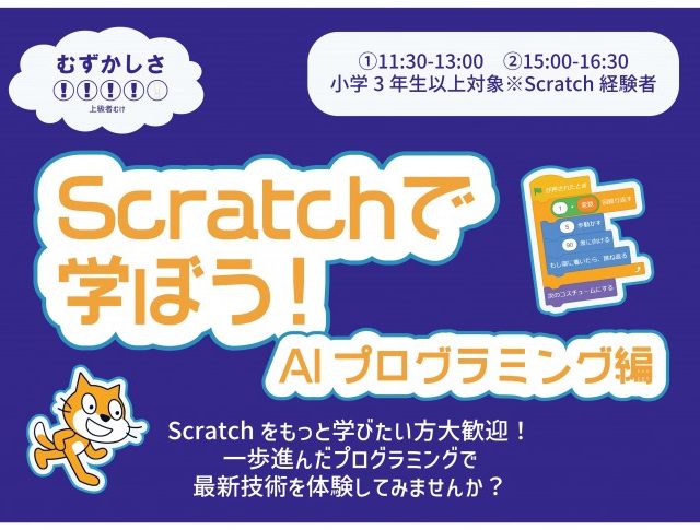 イベント scratchで学ぼう!AIプラグラミング編 3月26日(土) 3月26日(土)ははこだてみらい館で開催の【scratchで学ぼう!AIプラグラミング編】をご紹介しています♪ キッズ学ぶ 2022.03.02 イベントキッズ